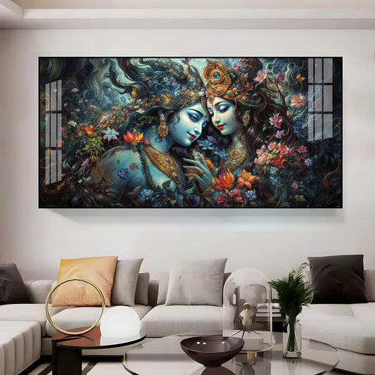 Mystical Love Of Radha Krishna Luxury Crystal Horizontal Wall Art
