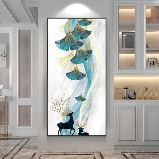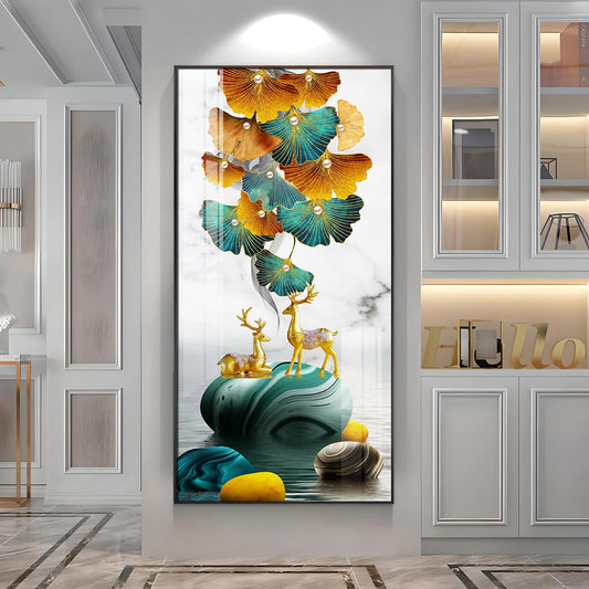 Beige Ginkgo Biloba with Deer Luxury Crystal Wall Art