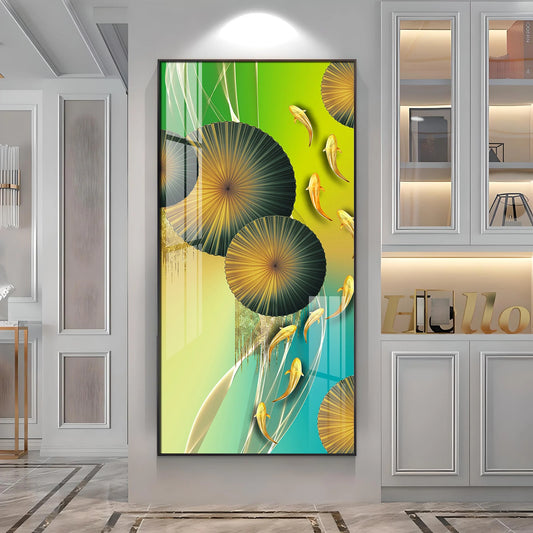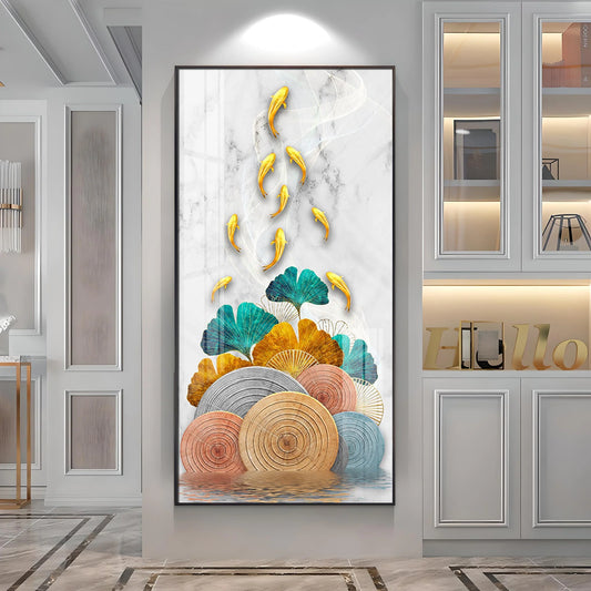 Group of Golden Koi Fishes Luxury Crystal Wall Art