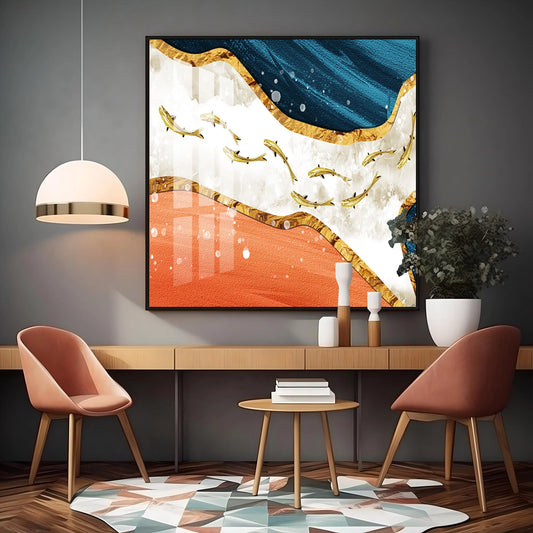 Abaniko Fishes Luxury Crystal Square Wall Art