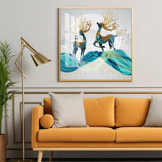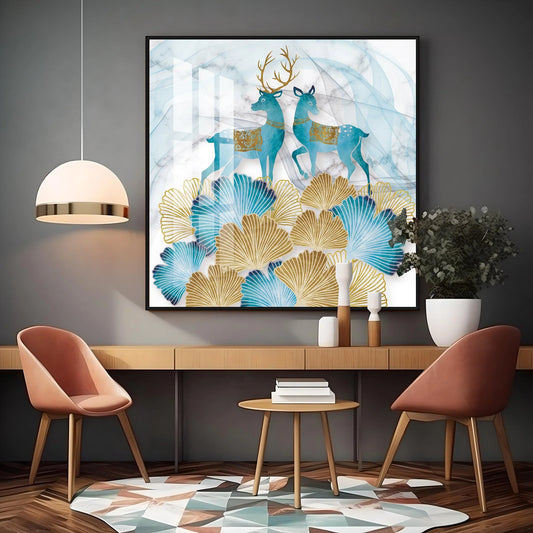 Two Beautiful Blue Deers Luxury Crystal Square Wall Art