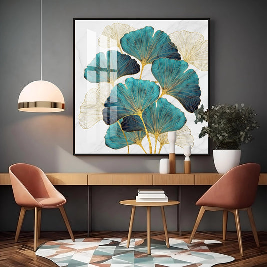 Nordic Ginkgo Luxury Crystal Square Wall Art