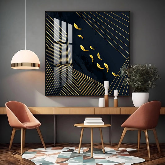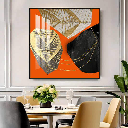 Black Gold Leaf Luxury Crystal Square Wall Art
