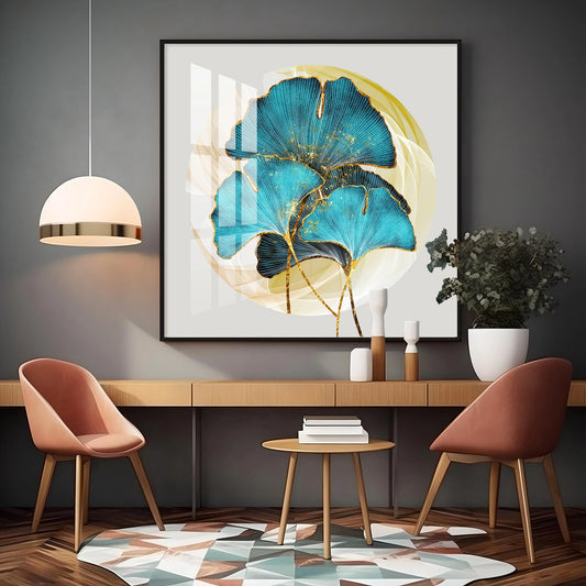 Golden Ginkgo Leaf Luxury Crystal Square Wall Art