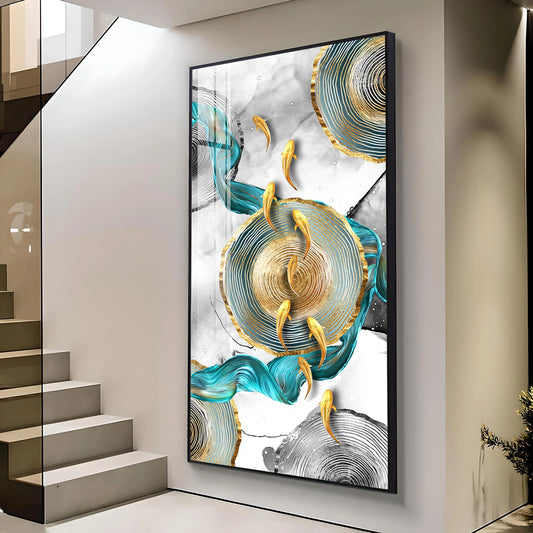 Gold Foil Goldfish Luxury Crystal Square Wall Art