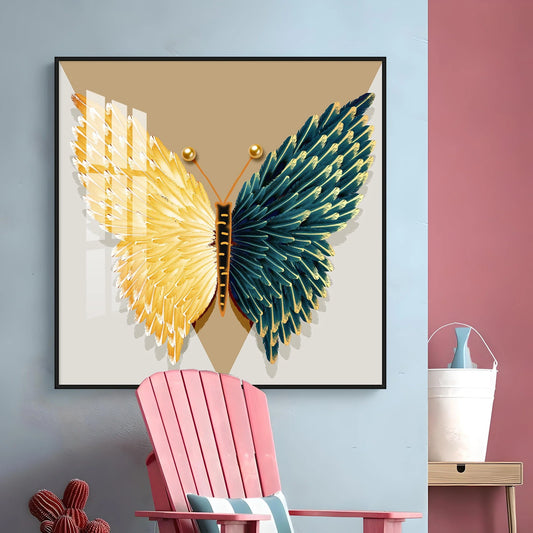 Feathers and Butterflies Luxury Crystal Horizontal Wall Art