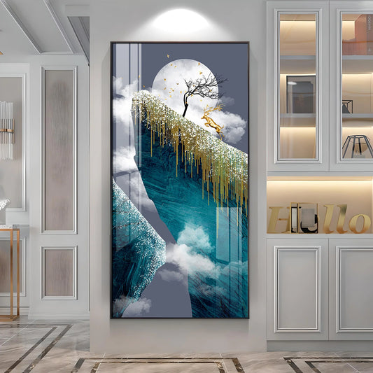 Golden Deers on Marble Stone Luxury Crystal Wall Art