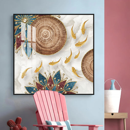 Golden Fish With Lotus Luxury Crystal Wall Art