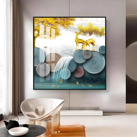 Golden Fortune Deer Luxury Crystal Square Wall Art