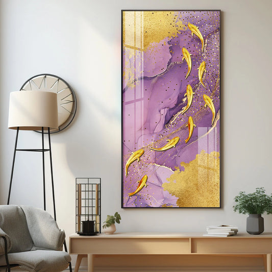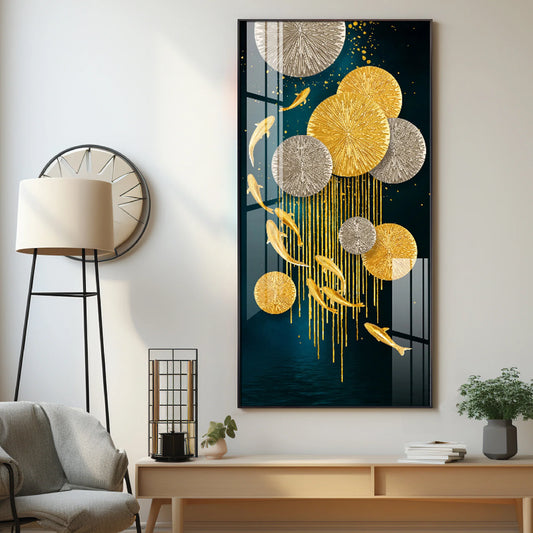Elegant Golden Koi Fishes Luxury Crystal Wall Art