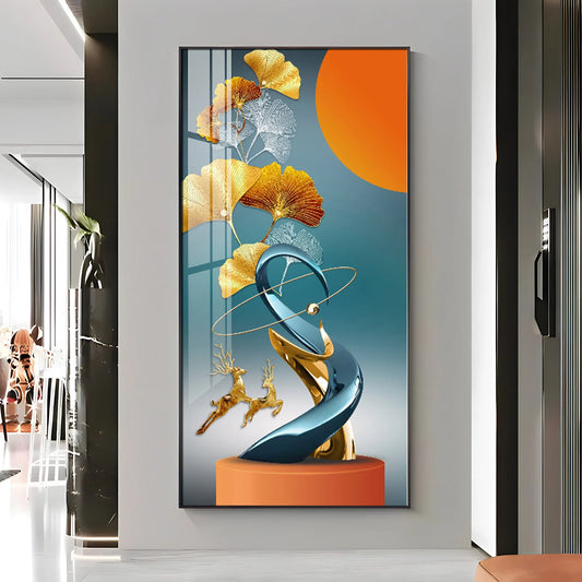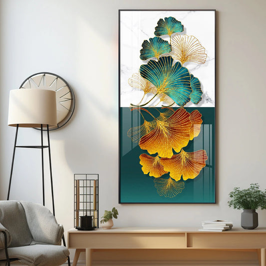 Ginkgo Leaf Entrance Hall Gold Foil Luxury Crystal Vertical Wall Art