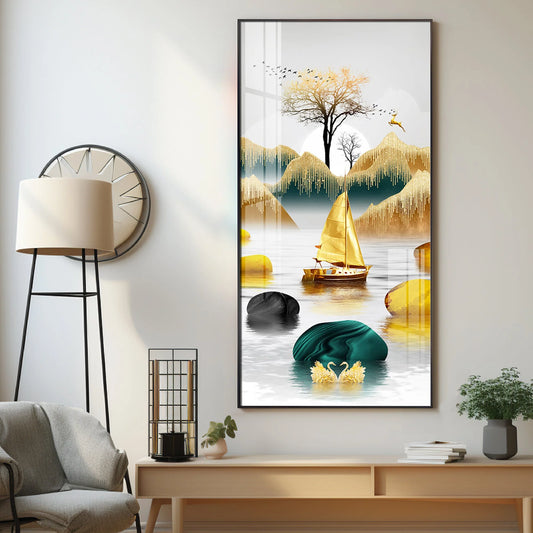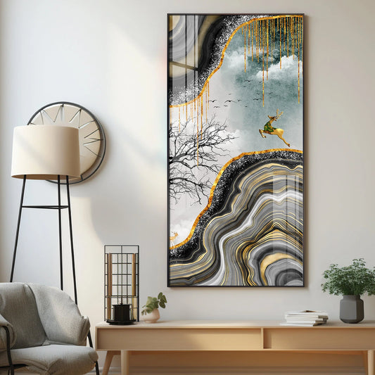 Geometric Abstract Premium Luxury Crystal Vertical Wall Art