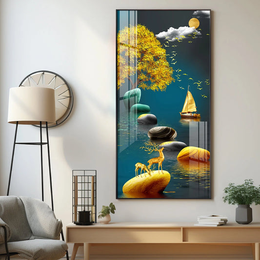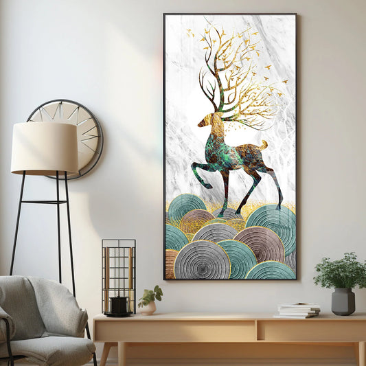 Chinese Zenstore with Golden Deer Luxury Crystal Wall Art