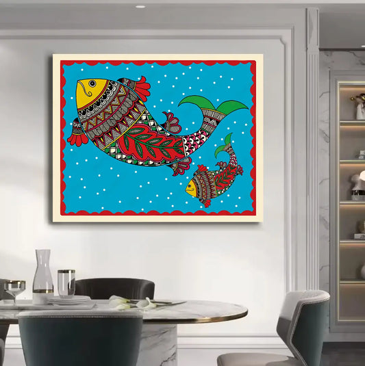 YF Colourful Fish Madhubani Canvas Art