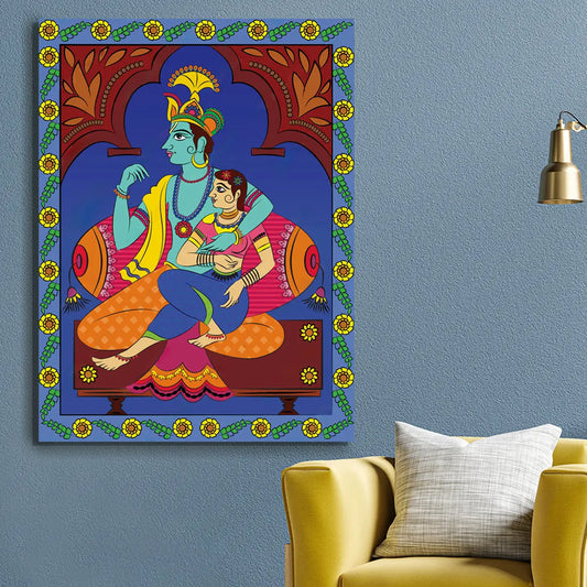 YF Colourful Traditional Radha Krishna Madhubani Painting