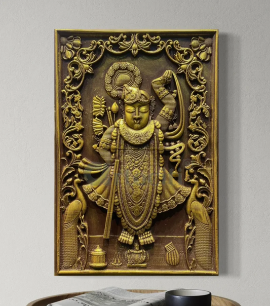 18X12 INCH Divine Lord Shreenath Ji (Krishna) 3D Relief Mural Wall Art
