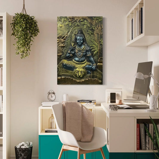 11.5X9 Inch Lord Shiva 3D Meditative Relief Sculpture Mural β Cultured Marble Finish