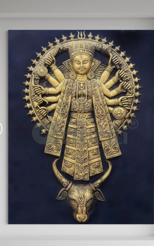Goddess Durga 3D Relief Mural Wall Art (4x3 Feet)
