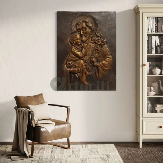 Saint Joseph with Baby Jesus 3D Relief Wall Art