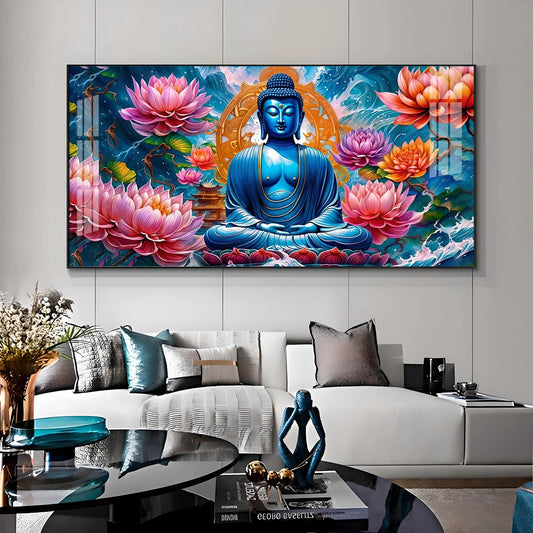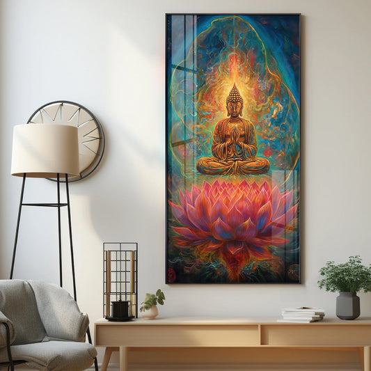 Buddha With Multicolor Lotus Petal Premium Acrylic Wall Art