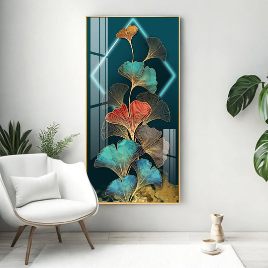 Ginkgo Leaf Entrance Hall Gold Foil Premium Acrylic Vertical Wall Art