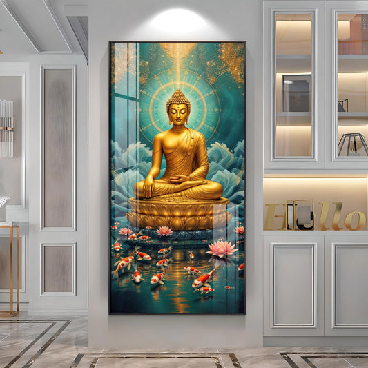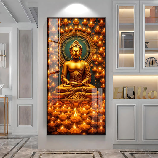 Golden Portrayal Of Buddha Premium Acrylic Vertical Wall Art
