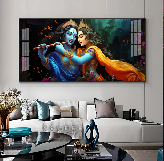 Radha Krishna Playing Bansuri Premium Acrylic Horizontal Wall Art