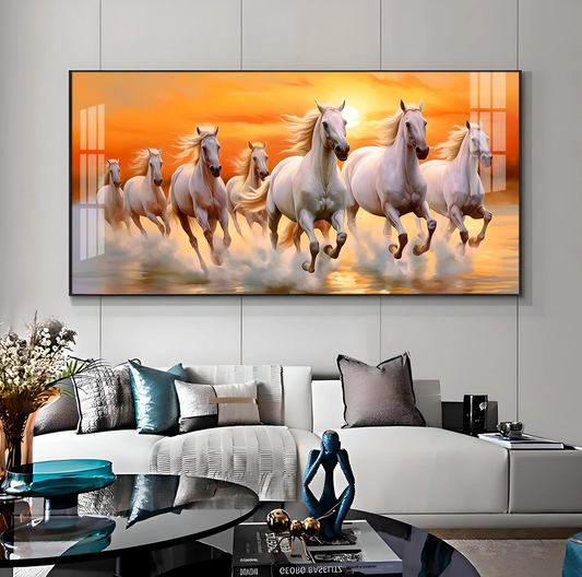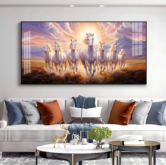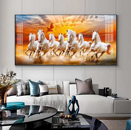 Vastu Seven Running Horses With Sunrise Premium Acrylic Horizontal Wall Art