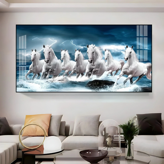 Vastu 7 Running White Horses Premium Acrylic Horizontal Wall Art