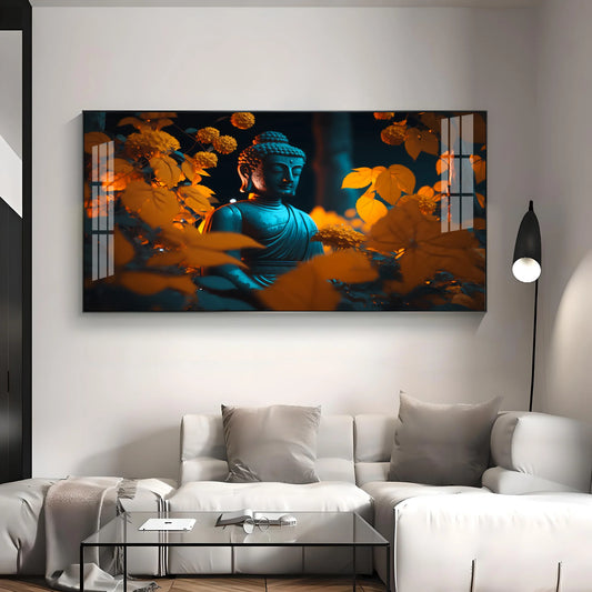 Buddha With Golden Autumn Fall Premium Acrylic Horizontal Wall Art