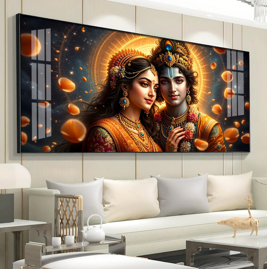 Cosmic Connection Radha Krishna Premium Acrylic Horizontal Wall Art
