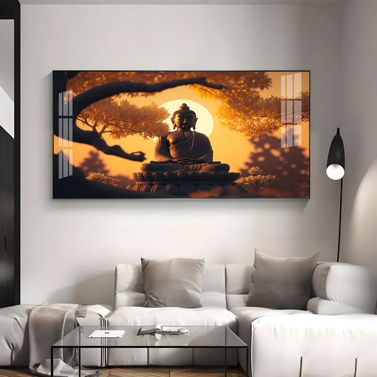 Sunset Fall Meditating Buddha Premium Acrylic Horizontal Wall Art