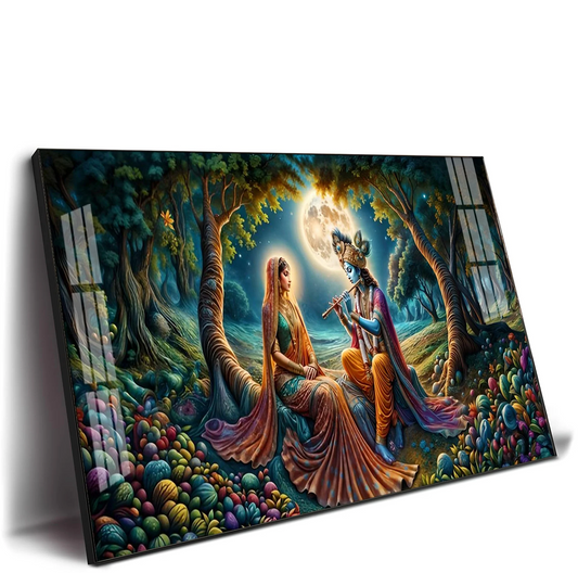 Mystical Love Of Radha Krishna Premium Acrylic Horizontal Wall Art