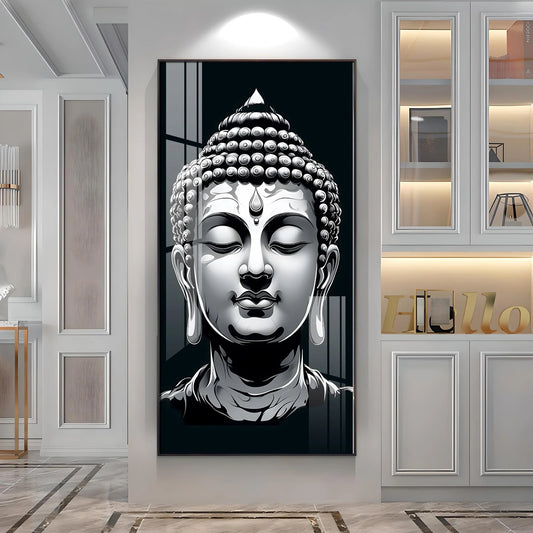 Buddha In Monochrome Premium Acrylic Vertical Wall Art