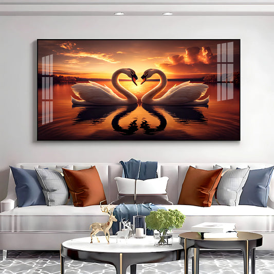 Loving Swan In Sunset Premium Acrylic Horizontal Wall Art
