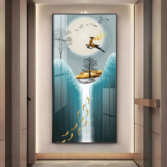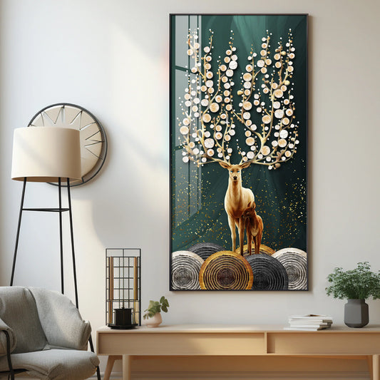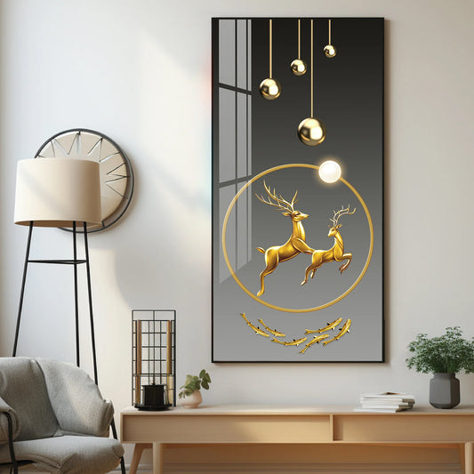 Jolly Jumping Deer Premium Vertical Acrylic Wall Art