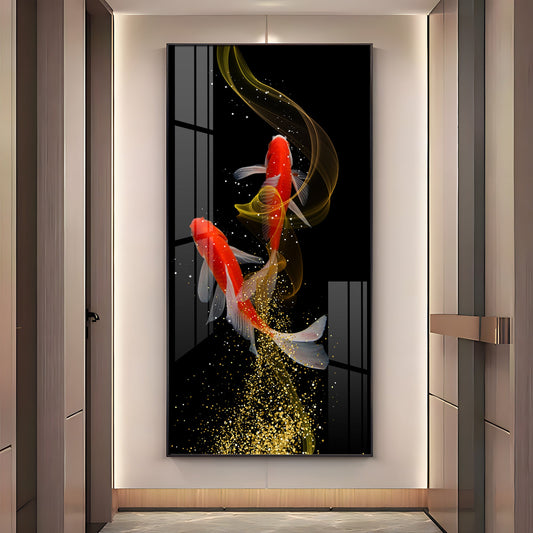 Golden Koi Fish Premium Acrylic Vertical Wall Art