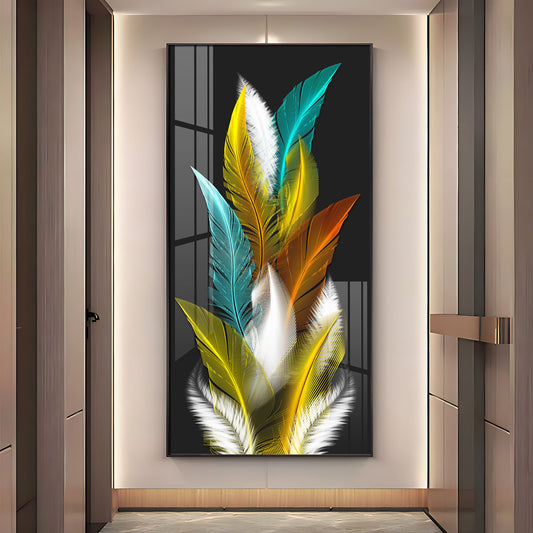 Colorful Feathers Premium Acrylic Vertical Wall Art