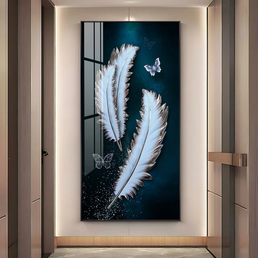 Magical Feathers With Butterfly Premium Acrylic Vertical Wall Art