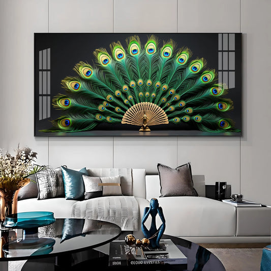 Noir Peacock Premium Acrylic Horizontal Wall Art