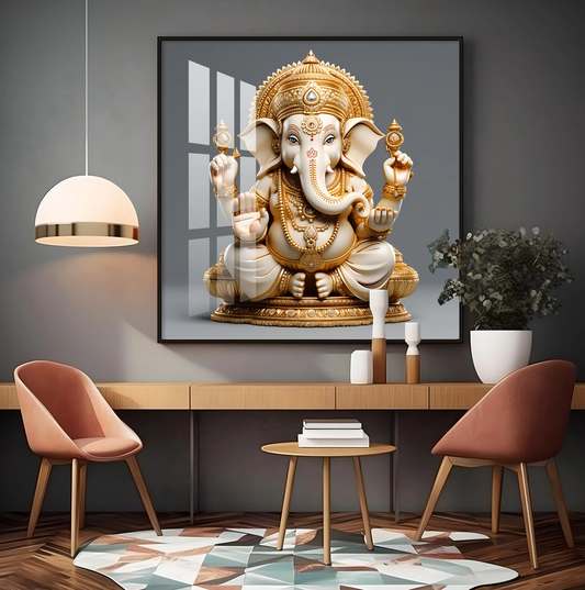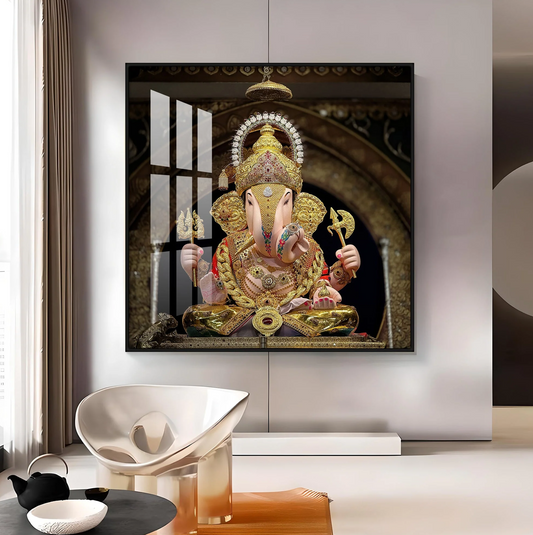 Lord Ganesh Blessings Premium Acrylic Square Wall Art