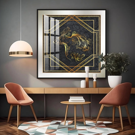 Modern Fashionable Gold Foil Goldfish Premium Acrylic Square Wall Art