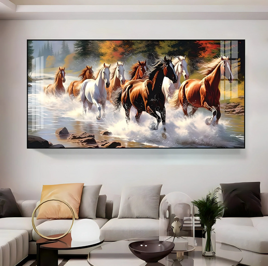 Running Horses in River Premium Acrylic Horizontal Wall Art