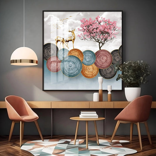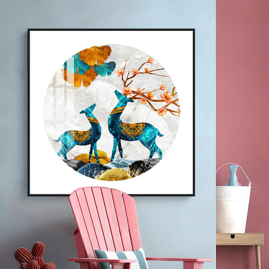 Golden Fortune Deer Premium Acrylic Square Wall Art