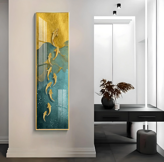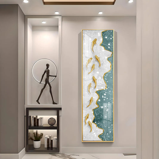 Golden Koi Fishes Premium Acrylic Vertical Wall Art