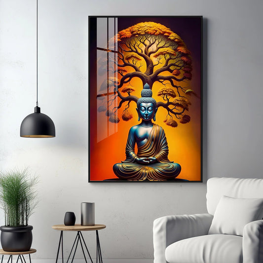 Sitting Buddha Under The Tree Premium Acrylic Vertical Wall Art