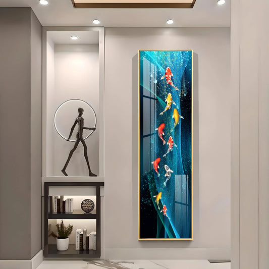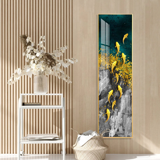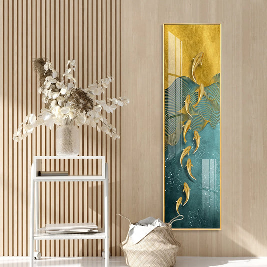 9 Golden Koi Fishes Premium Acrylic Vertical Wall Art