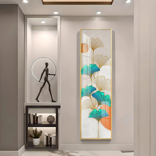 Abstract Golden Ginkgo Leaf Premium Acrylic Vertical Wall Art