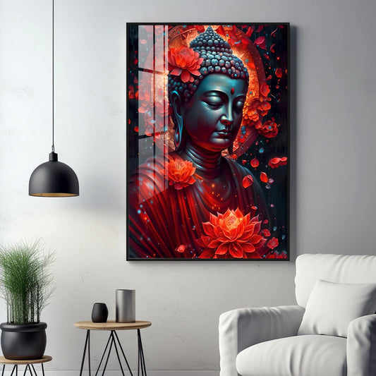 Red Buddha With Lotus Premium Acrylic Vertical Wall Art