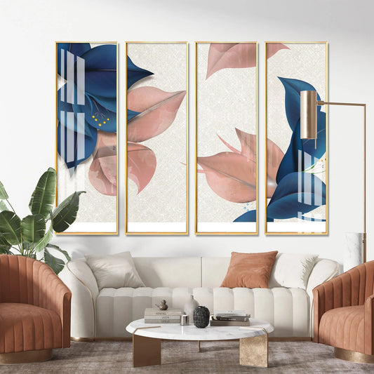 Blue & Peach Flowers Premium Acrylic Vertical Wall Art (set of 4)